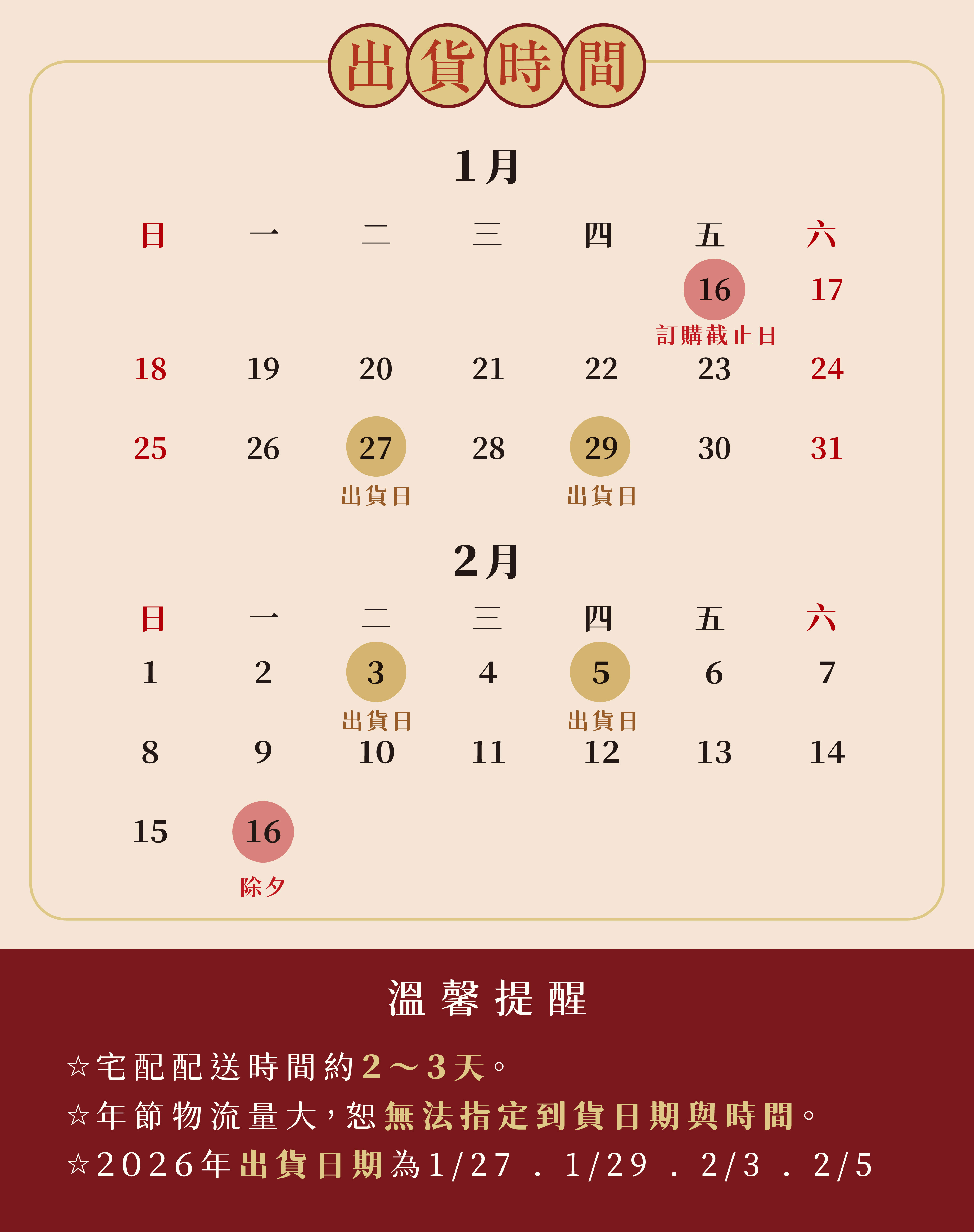 ※2026/1/27起陸續出貨。因春節前夕物流繁盛,恕無法指定到貨日與時段